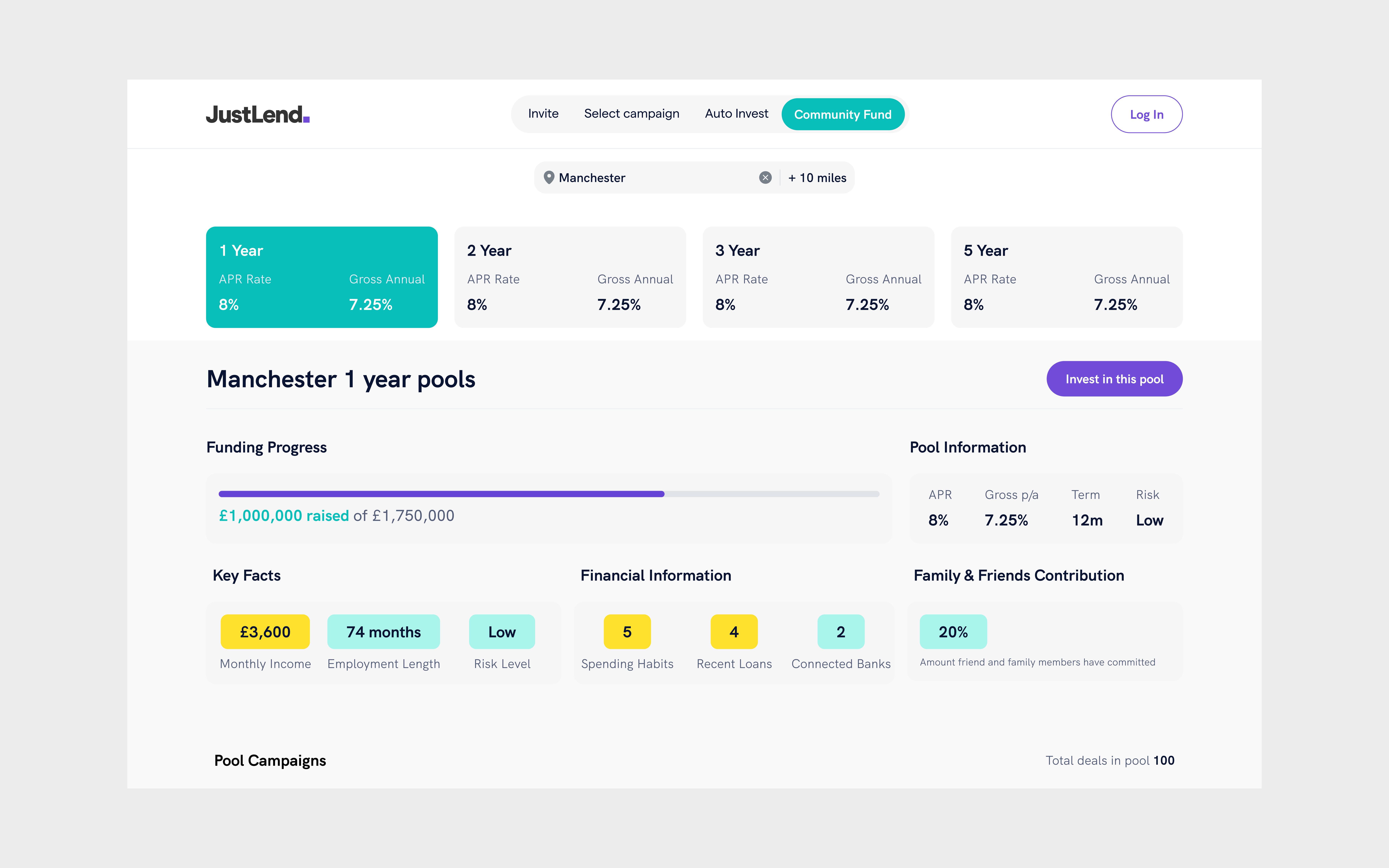 JustLend was a London FinTech startup with a noble vision but nothing tangible—no platform, no branding, no designs, not even a company name. They needed to go from pure concept to a complete brand identity and functional platform design that could communicate their community-first lending approach.