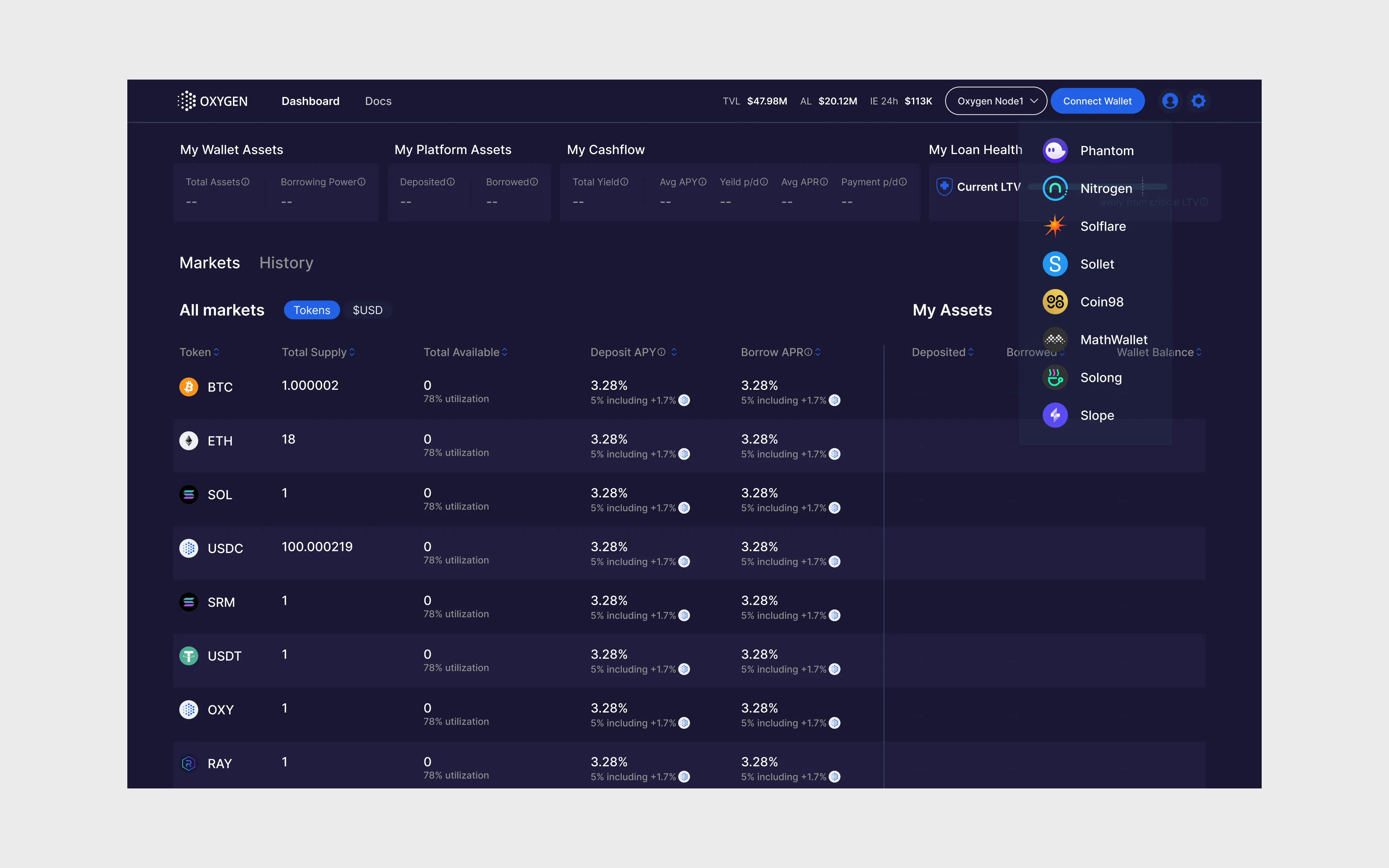 Oxygen is a Defi prime brokerage service built on Solana and serves as a permissionless, cheap, and scalable protocol that democratizes borrowing, lending, and trading with leverage. Oxygen provides it’s users with a more efficient way to manage their capital.